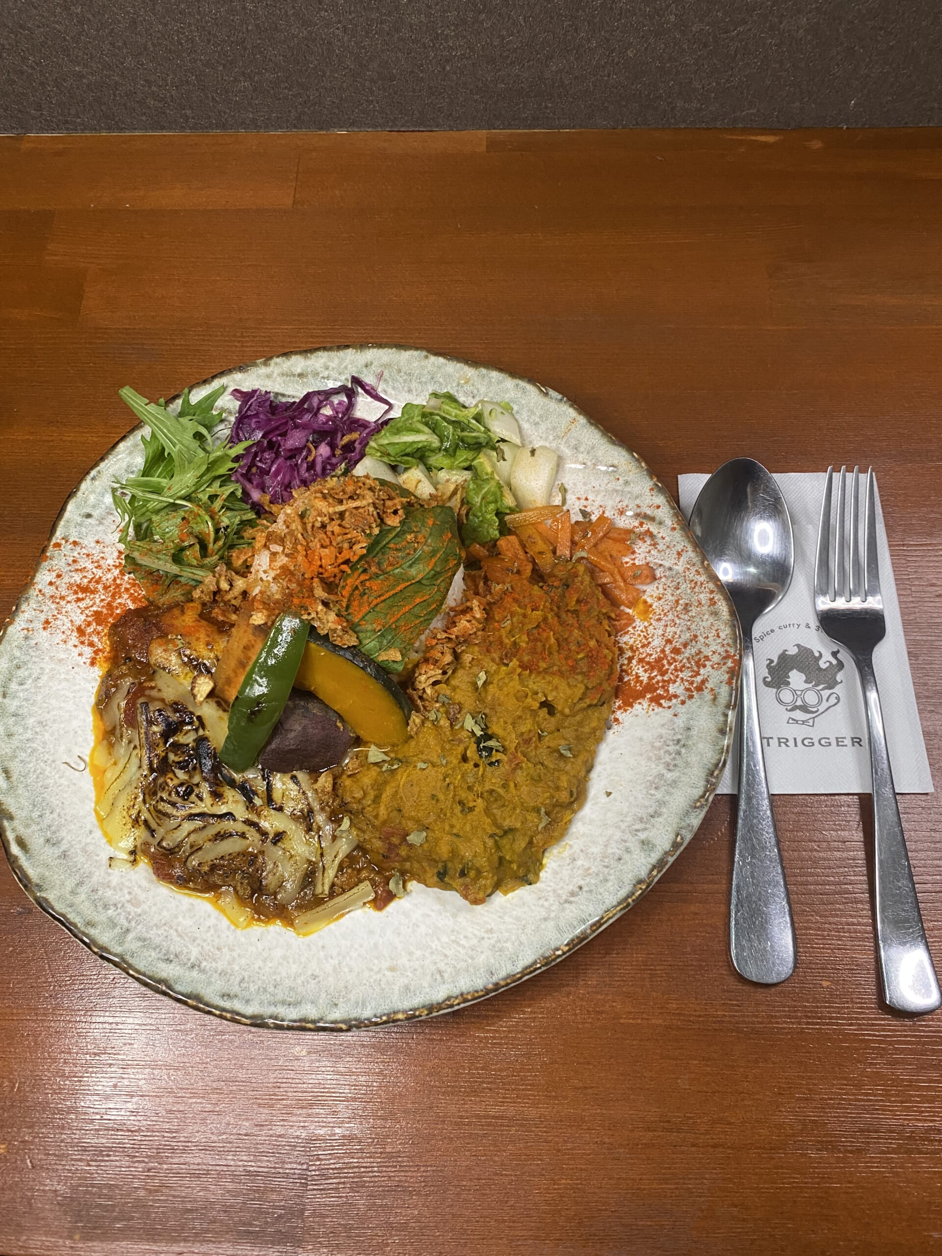【1月限定メニューのお知らせ❄️】 1月の期間限定カレーは… \やさしさに包まれる冬の一皿/ 【かぼちゃのクリーミーカレー🎃】 2年前に提供した際に大人気だった限定カレーが復活しました! かぼちゃの自然な甘みを、 特製の出汁が引き立てるクリーミーなカレー。 かぼちゃだけなのに、お肉に負けないほどしっかりとしたコクと満足感があります🍛 寒い季節に、ほっと心まで温まる一皿です🥰 そして1月の限定ドリンクは… 【ほうじ茶ラテ🍵】 香ばしいほうじ茶の香りと、 ミルクのやさしい甘さが相性抜群。 ホットでのご注文も可能なので、寒い日のお供にぴったりです☕ 1月だけの限定メニュー。 冬のTRIGGERで、ゆったりした時間をお楽しみください☺️